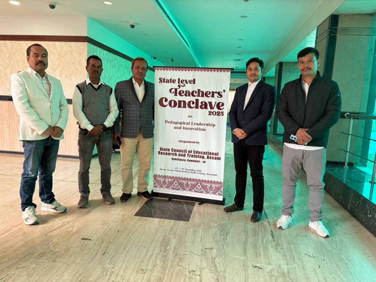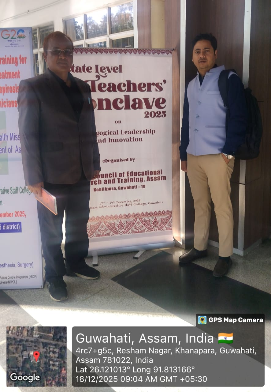 It's indeed a great opportunity to the teachers of Assam to exhibit and showcase their performance in a State Level platform which was held at Assam Administrative Staff College w.e.f. 17th to 19th Dec 2025 in the aegis of State Council of Educational Research and Training, Assam. Mr. Netra Gogoi, Senior Lecturer and Dr. Prithu Baruah, Lecturer of DIET Charaideo were deputed to represent both Sivasagar and Charaideo District along with three renowned teachers of Sivasagar District namely Mr. Robin Phukan, H/T, Pachim Basti Tribal M.V School (under Khelua Education Block), Mr. Gautom Panging Gam, H/T Bortol LP School (Nazira Education Block) and Atiqure Hazarika (ARBCC, Amguri Education Block). It was a milestone and an immeasurable experience to those teachers who attended the event to witness the exhibition of best practices during the entire three days of the conclave representing different districts of Assam, especially in the field of education, viz., Innovative Pedagogical Practices in Teaching Learning Process, Use of TLMs, Use of ICT in Classrooms, Functioning of FLN and ECCE Activities, Holistic Process of Assessment, and execution of Leadership Practices.
