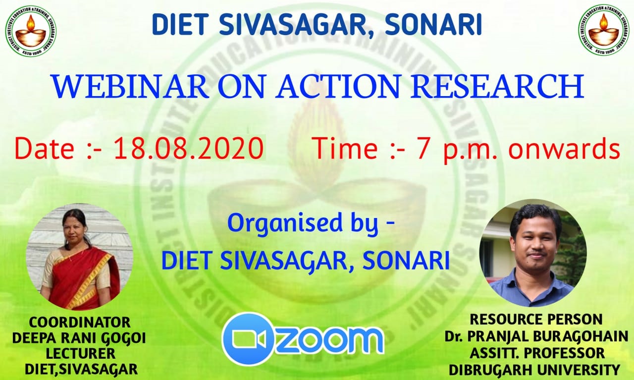 A webinar on Action Research was organised by DIET, Sivasagar, Sonari on 18/08/2020 through the Zoom platform, as the state was not free from the Covid pandemic at that time.